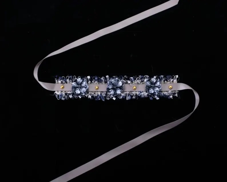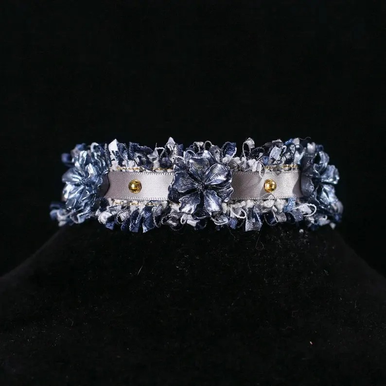 Gotisk blågrå blomsterbånd til kæledyr